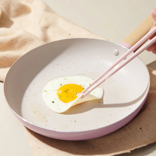 Non-Stick Frying Pan with PFAS-Free Ceramic Coating & Wooden Handle – 24cm Aluminium Alloy Omelette Pan – Works on All Cooktops: Induction, Gas & Electric – Available in White or Pink