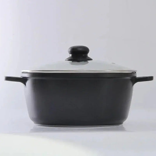 Stock Pot with Glass Lid & Wooden Handles-Available in Black & White Colour – Capacity: 5L