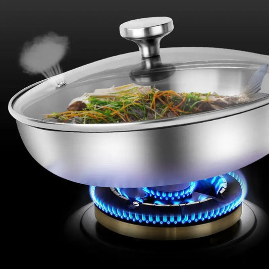 Stainless Steel Wok with Glass Lid & Long Handle- Durable Chef’s Cooking Wok Pan for Stir-Frying, Searing, Sautéing, Tossing Noodles, Frying Eggs, Omelettes & One-Pan Dishes – Compatible with Induction & Gas Stoves –(22cm)