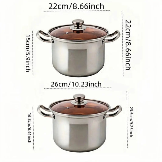 Stainless Steel Soup & Stock Pot with Glass Lid & Dual Handles – Durable Cooking Pot for Soups, Stews, Boiling Pasta, Frying, Searing, Stocks & One-Pot Meals – Compatible with Gas, Induction & Electric Stoves – Available in 22cm & 26cm