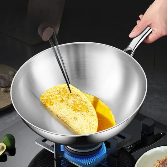 Stainless Steel Wok with Long Handle- Durable Chef’s Cooking Wok Pan for Stir-Frying, Searing, Sautéing, Tossing Noodles, Frying Eggs, Omelettes & One-Pan Dishes – Compatible with Induction & Gas Stoves – Available in 22cm,24cm,26cm,28cm & 30cm
