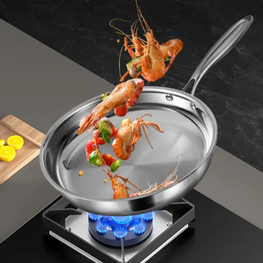 304 Stainless Steel Frying Pan with Glass Lid & Long Handle – Durable Skillet for Searing, Sautéing, Stir-Frying, Simmering & Pan-Frying Daily Meals – Suitable for Gas, Electric & Induction Cooktops – Available in 22cm, 24cm, 26cm & 28cm