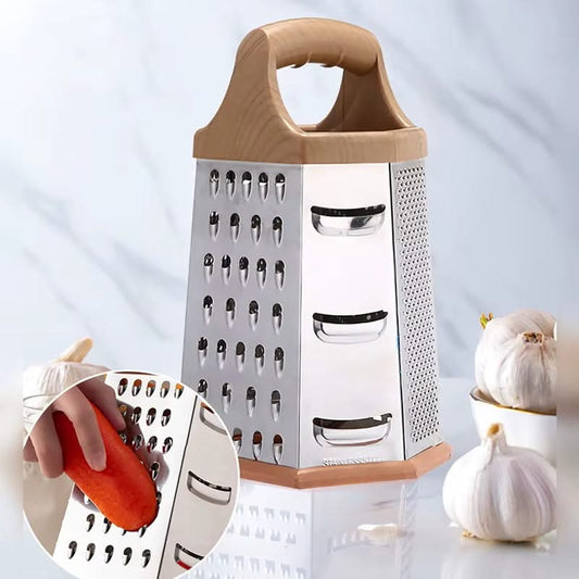6-in-1 Stainless Steel Box Grater with Handle – Multipurpose All-in-One Shredder for Cheese, Vegetables, and More, Ideal for Grating, Slicing, and Zesting (Available in 25x12cm and 22x10cm Sizes)