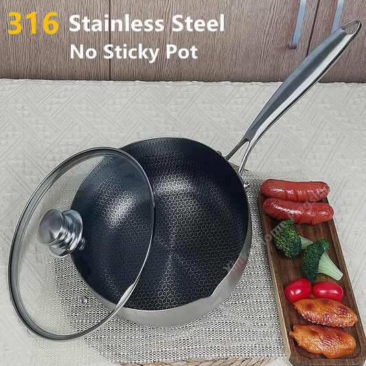 Honeycomb Stainless Steel Frying Pan/Wok β Multi-Use Durable 316 Non-Stick Skillet for Searing, SautΓ©ing, Steaks, Eggs, Stir-Frying & Everyday Meals β Works on All Stovetops