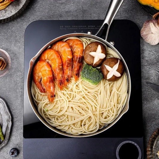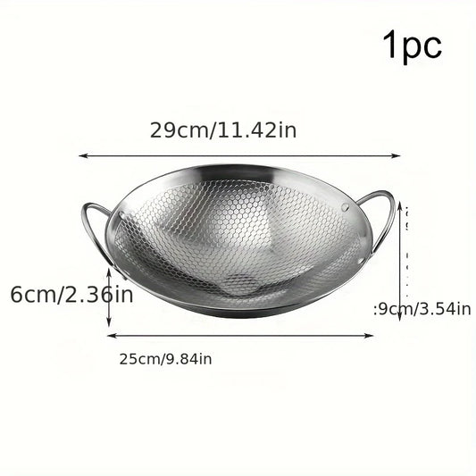 Honeycomb Stainless Steel Wok β 29cm Non-Stick Dual Handles Pan for Pasta, Steak, Stir-Frying, Boiling, Deep-Frying, Ramen & More β Scratch-Resistant & Heat-Conductive β Ideal for Restaurant or Home Use