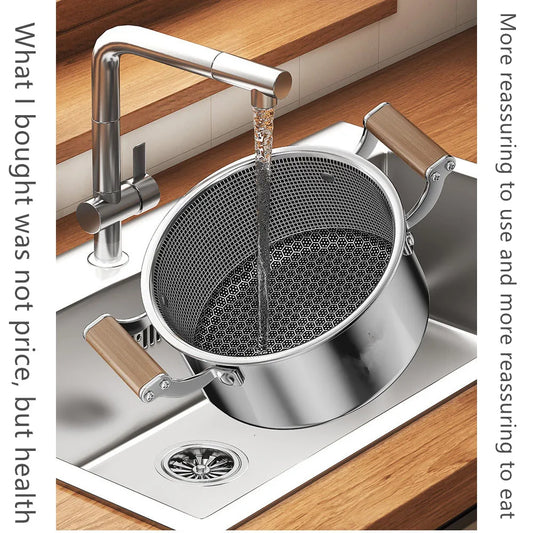 Honeycomb Stainless Steel Soup Pot with Dual Handles β Multi-Purpose Non-Stick 316 Food-Grade Stainless Steel Pot for Frying, Stewing, Searing, Stir-Frying, Soups, Stocks & Daily Cooking