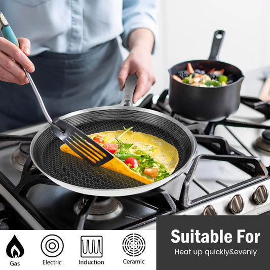 Honeycomb Stainless Steel Frying Pan β Tri-Ply Non-Stick Skillet for Searing, Stir-Frying & Daily Cooking β Works on All Stovetops β Available in 26cm, 28cm, 30cm
