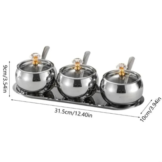 Stainless Steel Spice Jar Set with Tray