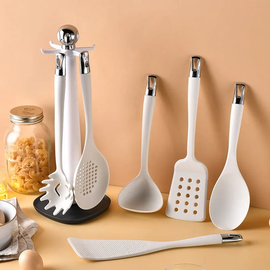Silicone Kitchen Utensils Set with Stainless Steel Handles – Heat-Resistant & Safe for Non-Stick Cookware – Ideal for Daily Cooking – Available in Multiple Colours & Various Piece Set Options