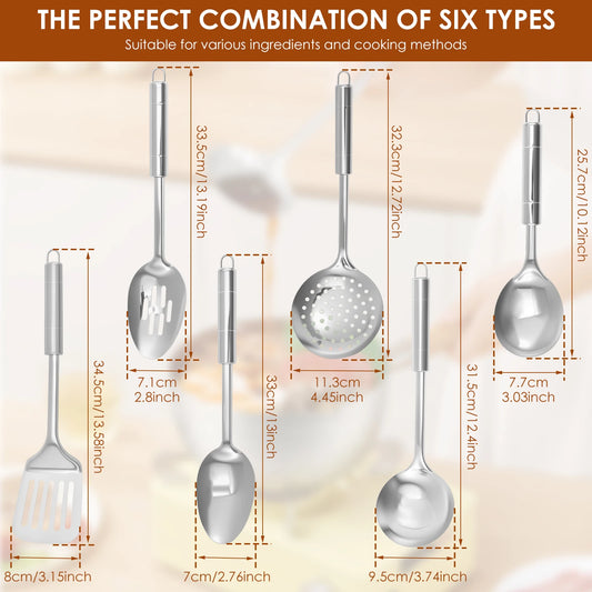 6-Piece Stainless Steel Cooking Utensils Set, Heat Resistant and Versatile