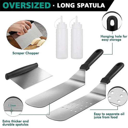 12-Piece Professional Heavy-Duty Stainless Steel Griddle Spatula Set with Utensils & Carry Bag – Includes Spatulas, Turners, Scrapers, Tongs, Bottles, Ring Moulds, Basting Brush & Storage Bag – Ideal for Flat Top Grilling, Teppanyaki, Hibachi & BBQ