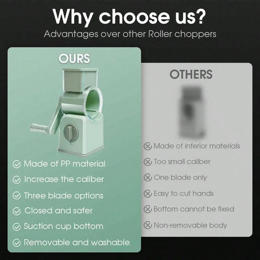 3 in 1 Rotary Cheese Grater β Multifunctional Slicer and Shredder with Easy-to-Swap Stainless Steel Interchangeable Rotating Drum Blades for Effortless Kitchen Prep(Available inΒ Red, Blue and Green)