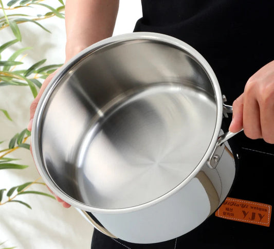 Stainless Steel Saucepan with Lid & Long Handle – 3-Layer Base Cooking Pot for Boiling Milk, Soups, Sauces & Daily Meals – Heat-Resistant Grip – Induction & Gas Stove Compatible – 2.4L (18cm Diameter) – Silver