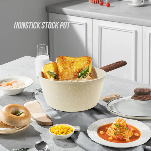 Non-Stick Granite Maifan Stone Coating Saucepan – Ideal for Heating Milk, Boiling, Simmering & Preparing Sauces, Soups & Small Daily Meals – PFOA-Free Durable Milk Pot with Granite Finish