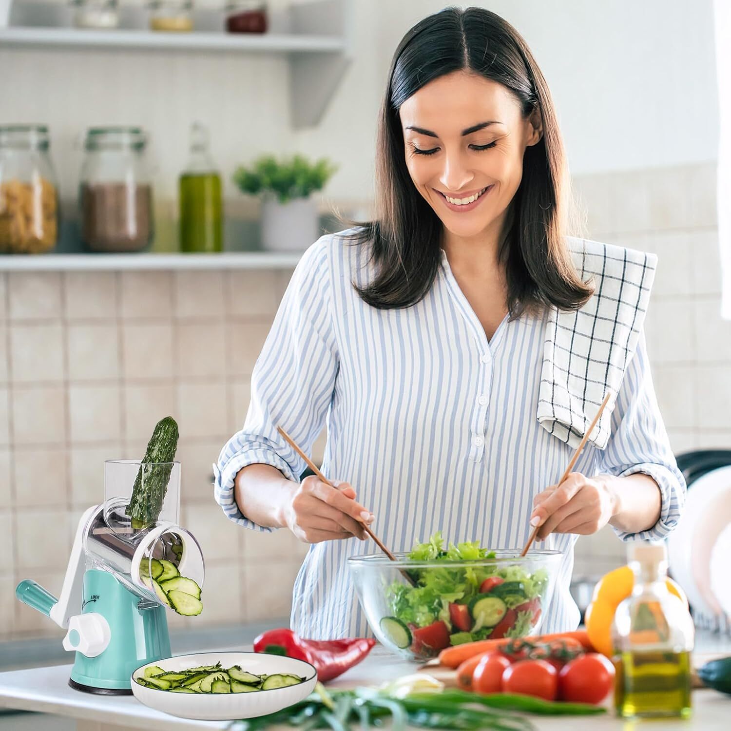 Rotary Cheese Grater Chopper - Vegetable Mandoline Slicer with 3 Interchangeable Ultra Sharp Cylinders Stainless Steel Blades
