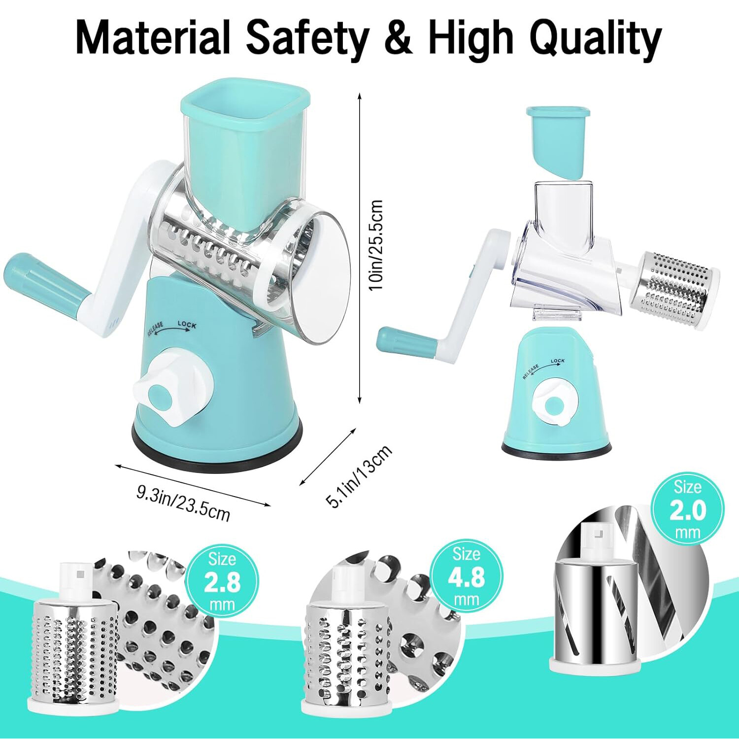 3 in 1 Rotary Cheese Grater – Multifunctional Slicer and Shredder with Easy-to-Swap Stainless Steel Interchangeable Rotating Drum Blades for Effortless Kitchen Prep Tool(Sky Blue)