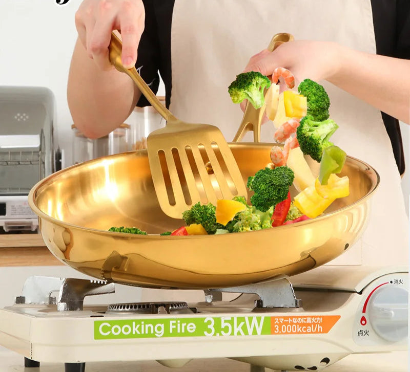 📦 Package Includes: 1 x Golden Stainless Steel Frying Pan