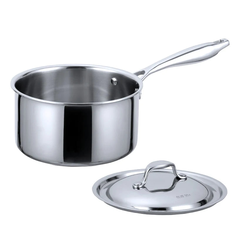 Stainless Steel Saucepan with Lid & Long Handle – 3-Layer Base Cooking Pot for Boiling Milk, Soups, Sauces & Daily Meals – Heat-Resistant Grip – Induction & Gas Stove Compatible – 2.4L (18cm Diameter) – Silver