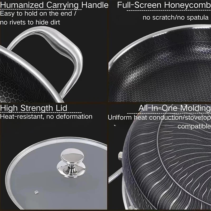📦 Package Includes: 1 × Honeycomb Stainless Steel Frying Pan with Glass Lid