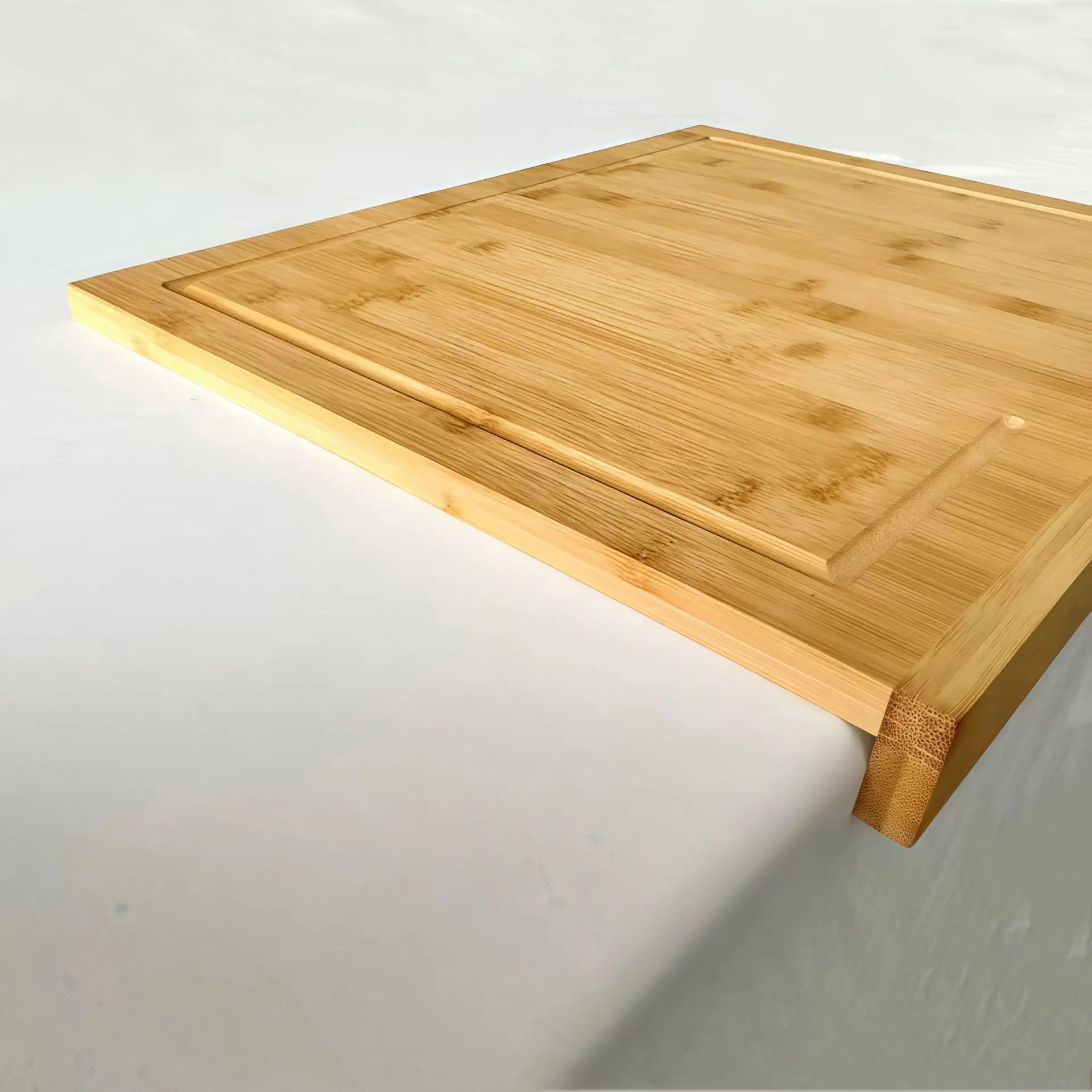 Crafted from high-quality natural bamboo, this chopping board is designed for durability and functionality. Featuring a raised edge, it ensures safe and stable use on your kitchen countertop, making it perfect for all your food preparation tasks.