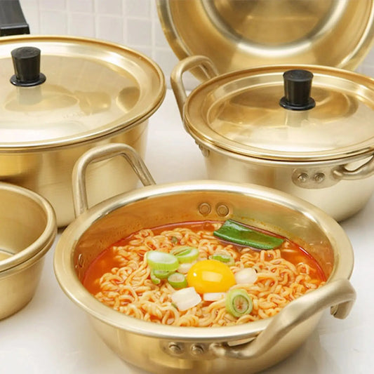 Golden Aluminum Noodle & Soup Pot with Lid – Ideal for Ramen, Milk, and Egg Cooking (Available in 16cm, 18cm, 20cm)