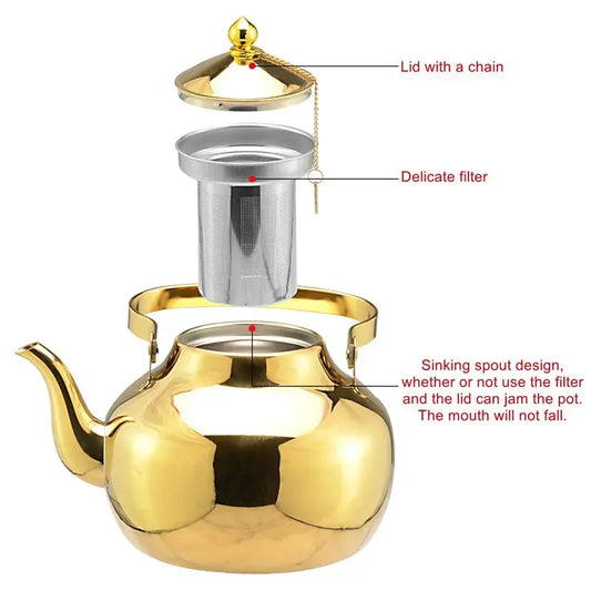 Golden Stainless Steel Kettle with Infuser – Multi-Use for Tea, Coffee, Oils Storage, Clear Soups & Baby Food Prep ,Home & Office Kitchenware