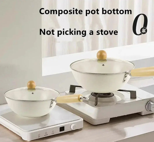 Ceramic Non-Stick Wok with Wooden Handle & Glass Lid – Ideal for Stir-Frying, Searing, Deep-Frying, Steaming, Boiling & Daily Cooking – Compatible with Induction & Gas Stoves – 30cm